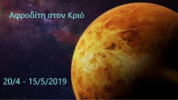 Ο πλανήτης της ομορφιάς, της αγάπης, των σχέσεων, της καλοπέρασης αλλά και των οικονομικών, η Αφροδίτη, κλείνει τον κύκλο της στους Ιχθείς, το ζώδιο της έξαρσης της και ετοιμάζετε να κάνει το πέρασμα της από το ζώδιο του Κριού, μια κακή θέση γι’ αυτήν. Από τους Ιχθείς η Αφροδίτη ήταν ρομαντική, ευαίσθητη, ιδεαλίστρια. Εύκολα παράβλεπε και συγχωρούσε οτιδήποτε αρνητικό. Από τη νέα της θέση η Αφροδίτη αλλάζει χαρακτήρα και συμπεριφορά. Εδώ βρίσκετε σε πτώση και δεν μπορεί να εκφράσει τα θετικά της χαρακτηριστικά. Αποκτά τα χαρακτηριστικά του Κριού. Γίνετε λοιπόν πολύ μαχητική, αυθόρμητη, ενθουσιάζετε εύκολα (αλλά και της περνά εξίσου εύκολα), ερωτεύεται γρήγορα και με πάθος, διεκδικεί έντονα αυτό που θέλει και αγωνίζεται μέχρι να το πάρει. Γίνετε εγωίστρια. Την ενδιαφέρει μόνο αυτό που θέλει αυτή και που της δίνει χαρά.
