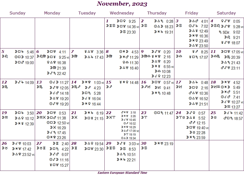 Στις 13 Νοέμβριου 2023 είχαμε Νέα Σελήνη στις 20.43 Σκορπιού σε στενή σύνοδο με τον Άρη και αντίθεση με τον Ουρανό, η οποία ενεργοποίησε τον χάρτη της Νέας Σελήνης στις 16/8