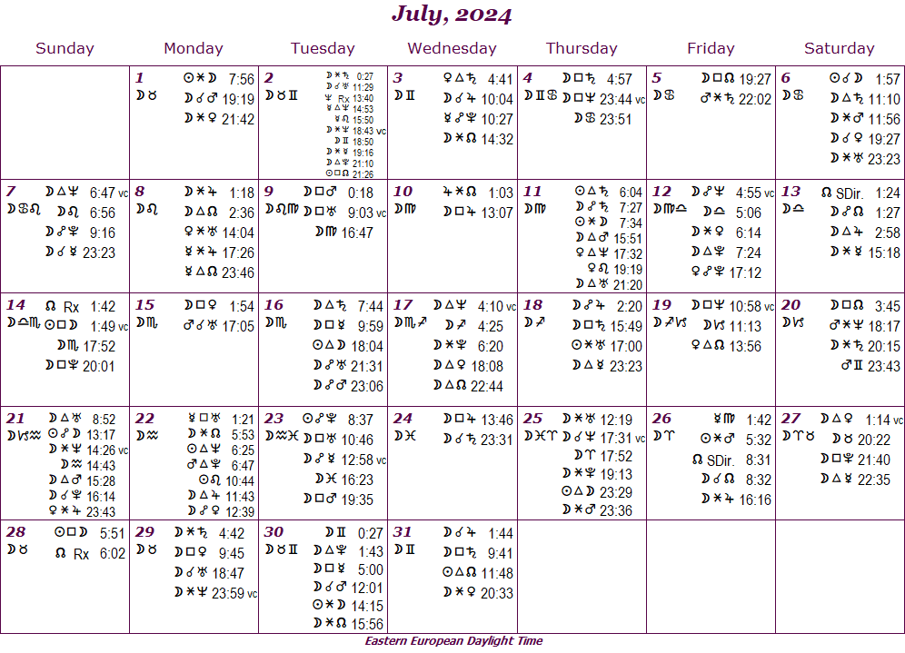 Οι συνδυασμος των αστρολογικων ενεργειων των επομενων ημερων υποδηλωνουν οτι αυτη την βδομαδα, και συγκεκριμεν τις επομενες μερες, ισως και αυριο σαββατο 20/7/2024,