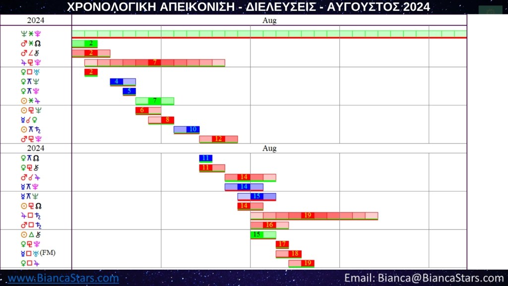 Οι αστρολογικες ενεργειες το πρωτο δεκαπενθημερο του Αυγουστου υποδηλωνουν αντιποινα, εκδικητικοτητα, βια, αγριες πολεμικες ενεργειες, ατυχηματα αλλα και μαζικες εξοδους ψυχων.