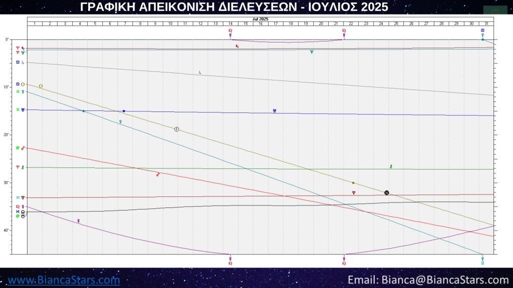 Το τετράγωνο Ήλιου–Χείρωνα στις 19 Ιουλίου και η αντίθεση Ήλιου–Πλούτωνα στις 24 Ιουλίου μπορεί να σημαδέψουν ακόμη και την πτώση ηγετών ή την αποκάλυψη μαζικών σκανδάλων.