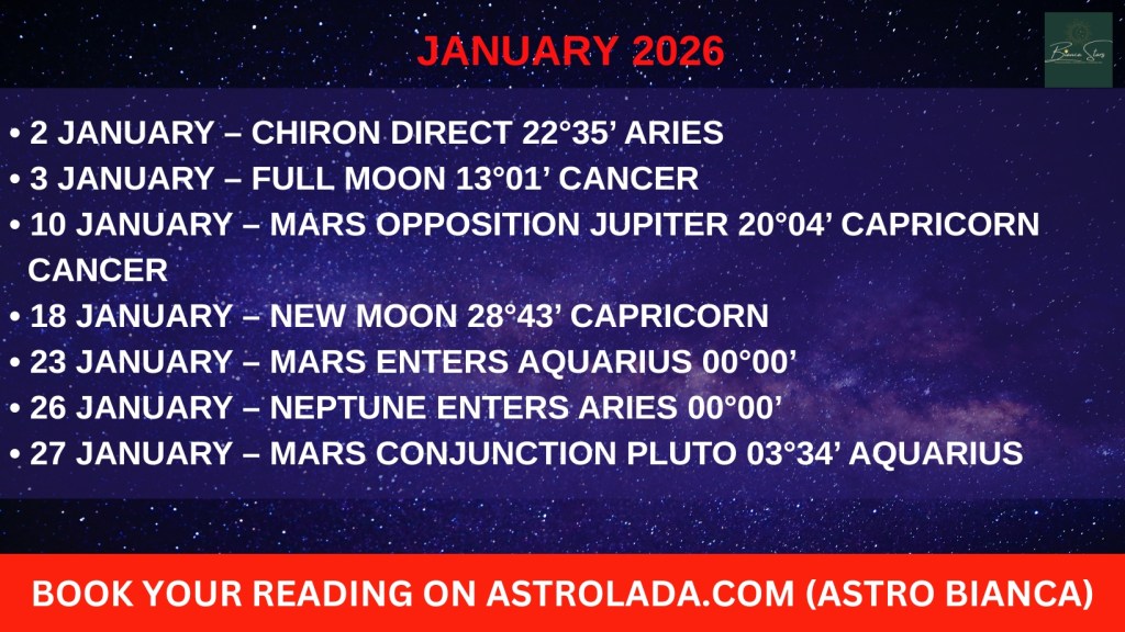 Ο Ιανουάριος 2026 ανοίγει τη χρονιά με εξαιρετικά σκληρό, βίαιο και αποκαλυπτικό τόνο. Παρότι δεν είναι ο πιο «γεμάτος» μήνας από σημαντικά αστρολογικά φαινόμενα, συγκεντρώνει κρίσιμες συνοδικές εκκινήσεις, έντονη πολεμική ενέργεια και καθοριστικά φεγγάρια, που λειτουργούν ως σημεία καμπής για κράτη, ηγεσίες, οικονομία και διεθνείς ισορροπίες.