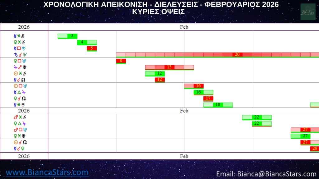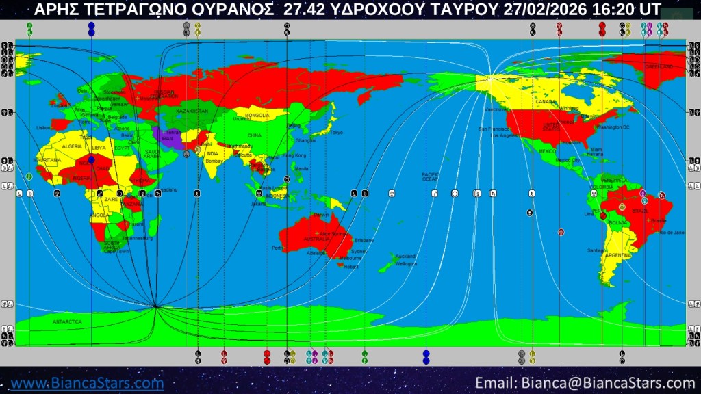 - 27 Φεβρουαριου – Κορύφωση του τετραγώνου Άρη–Ουρανού, με ενεργοποίηση ήδη από τις 23–24