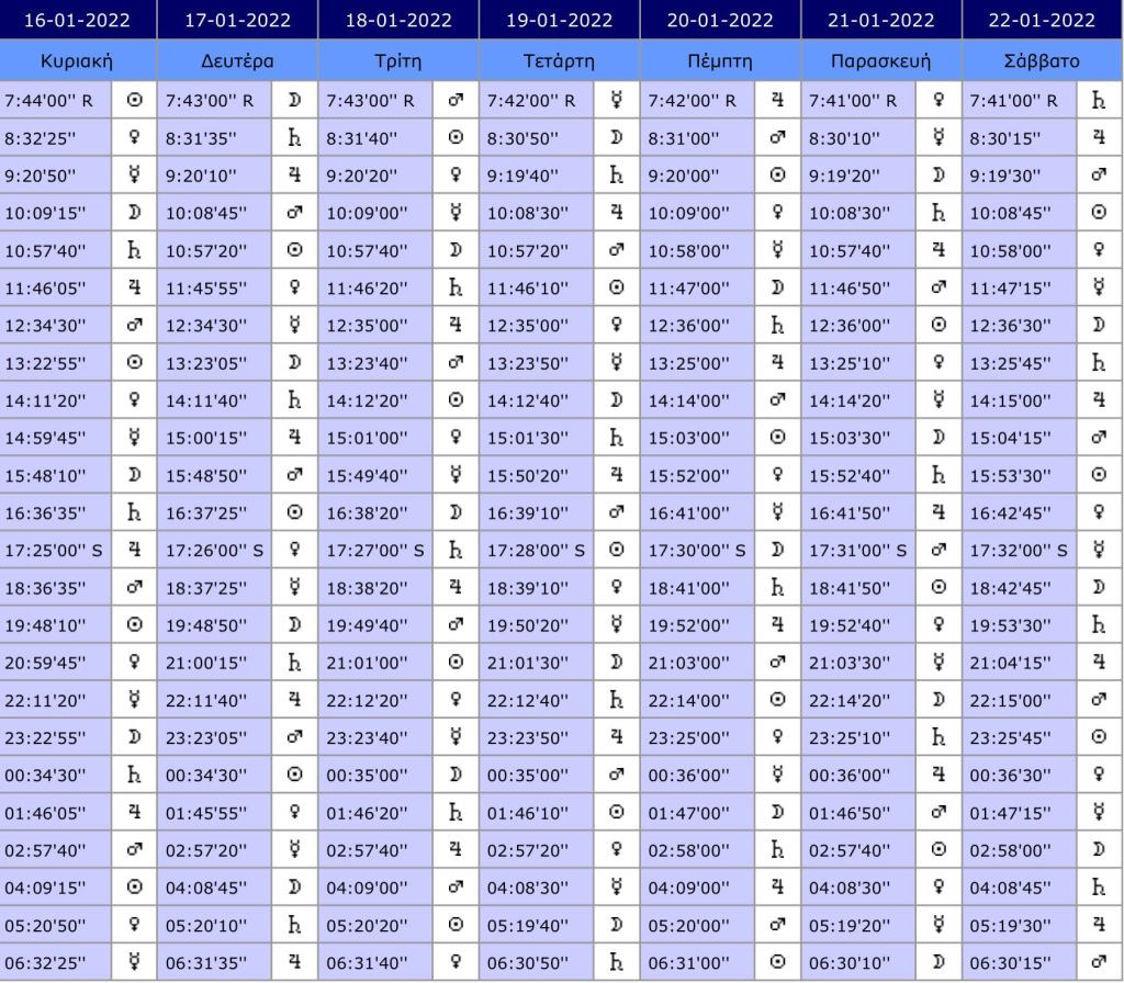 Πλανητικές ‘Ωρες Ιανουάριος 20221